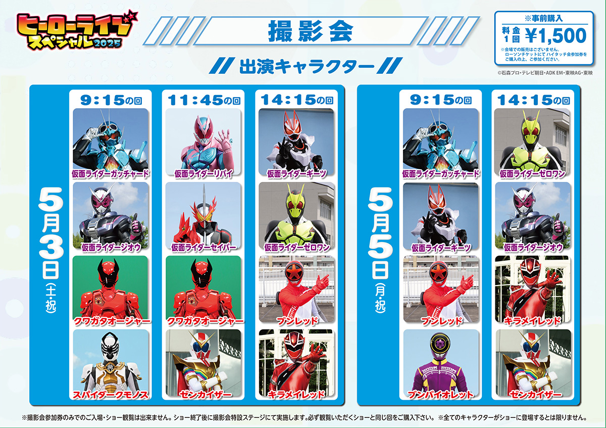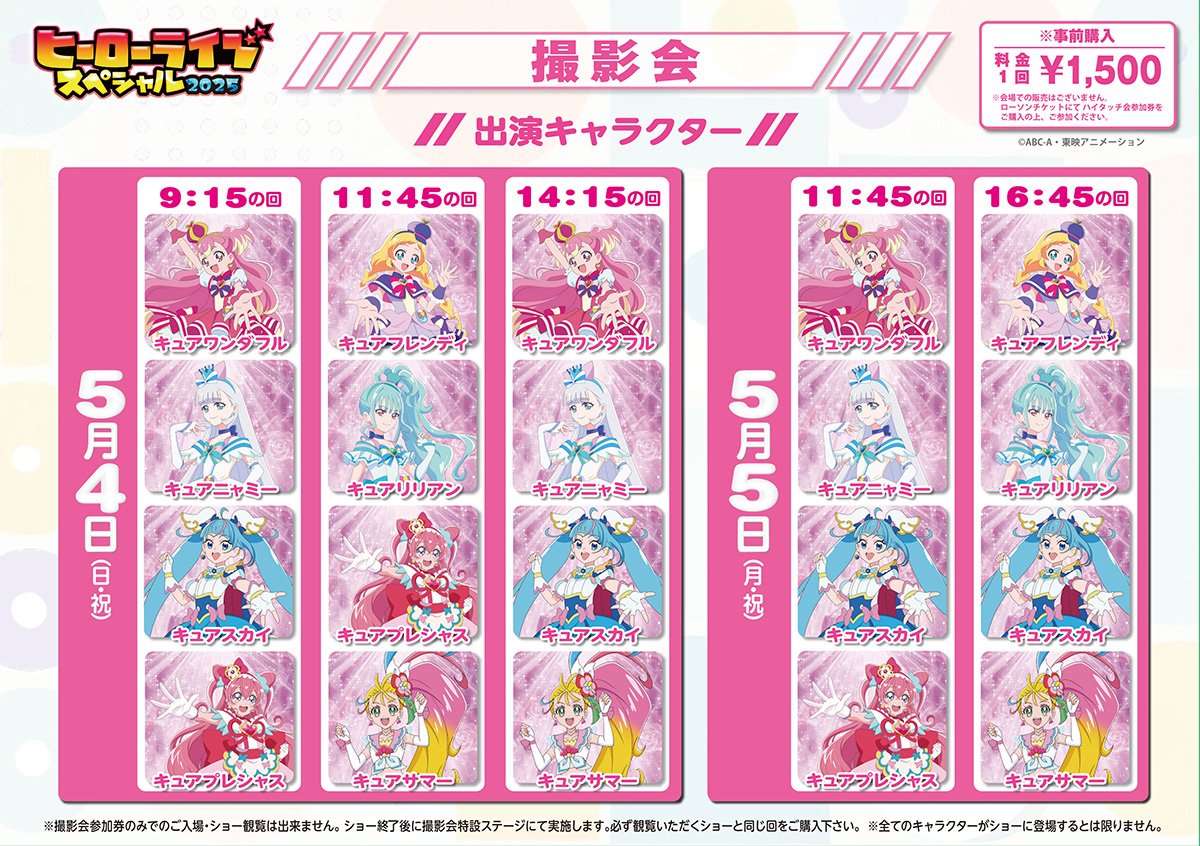 - ※撮影会はプリキュアまたは、ヒーローとの記念撮影にご参加いただけます。