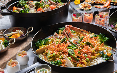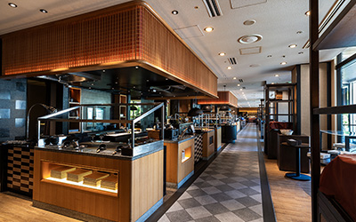 ローストビーフや寿司、すき焼きなどライブキッチンよりご提供するブッフェレストラン。