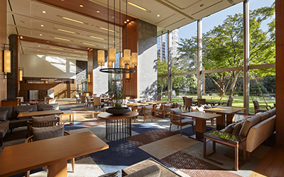 明るく開放感のある空間で、サンドウィッチやスパゲティなどの軽食を楽しめるオールデイラウンジ。