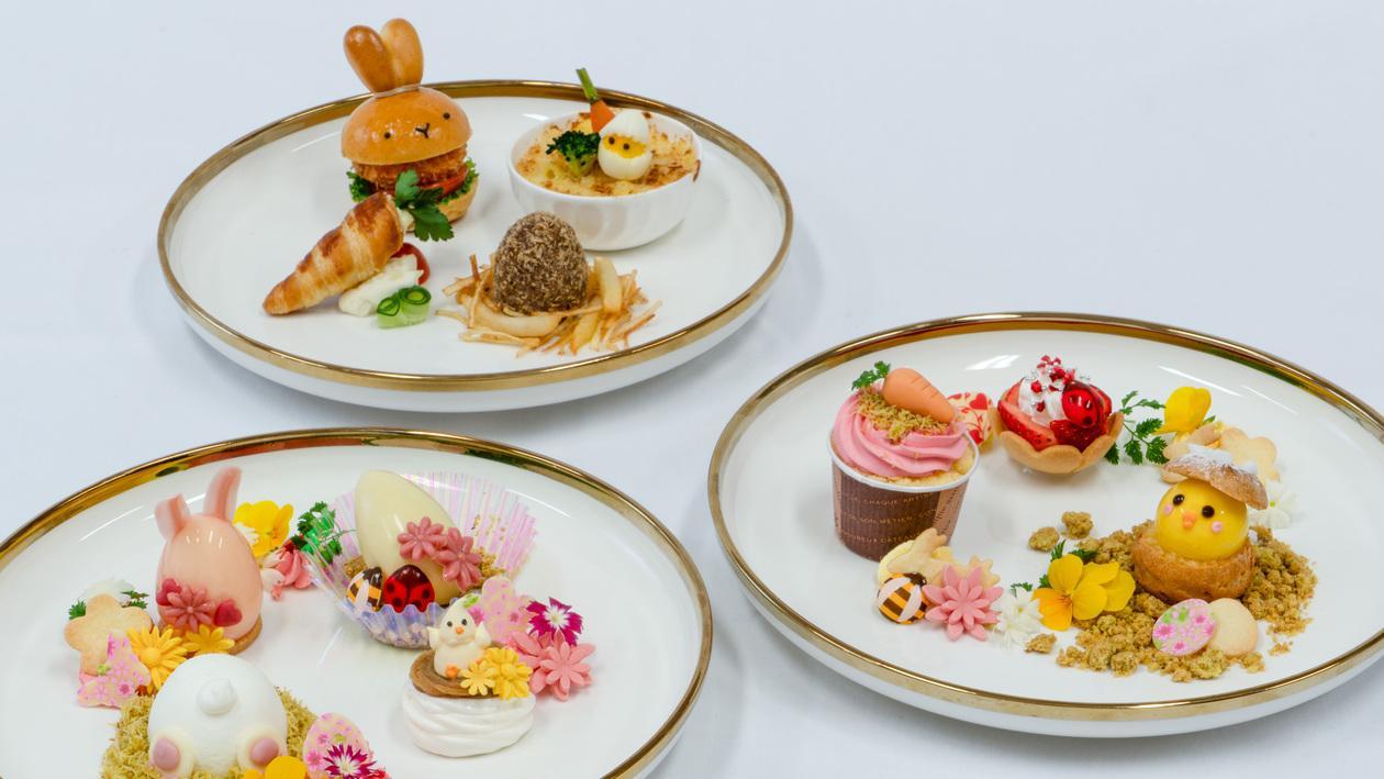 さらに、ホテルシェフがこの日のためにご用意する、可愛いうさぎ型のミニハンバーガーやスコッチエッグなどのイースター限定のセイボリーメニューもお楽しみいただけます。