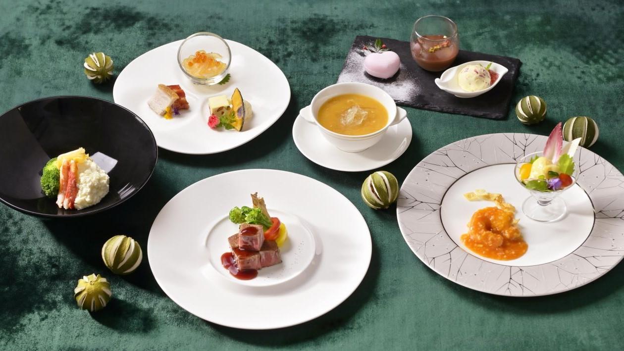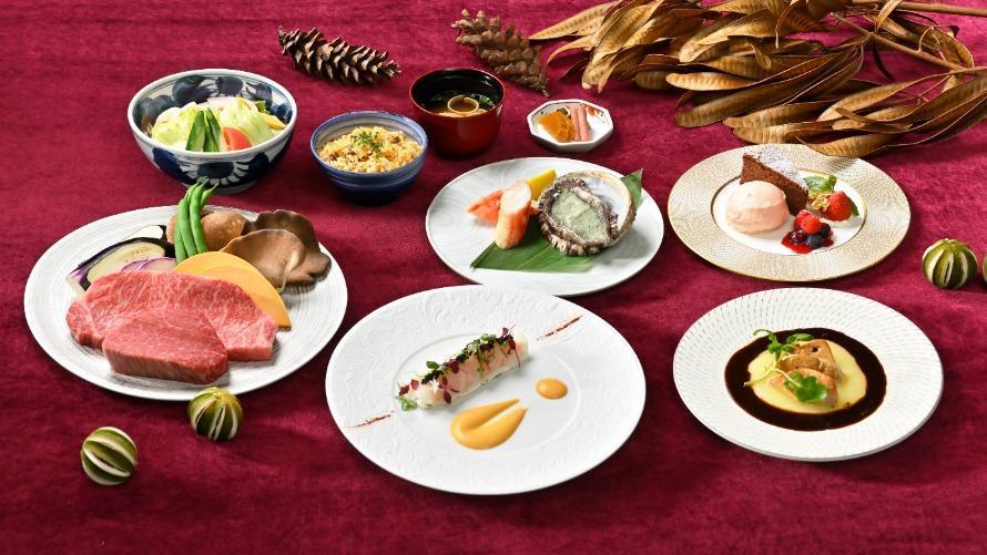 フォアグラ、トリュフ、キャビアの三大珍味や活鮑、タラバガニ、神戸牛など贅を尽くしたクリスマス限定コース。