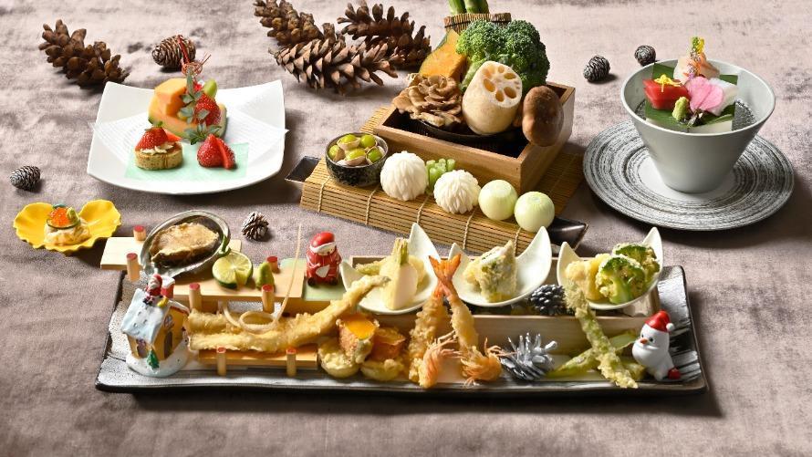 車海老や蝦夷鮑、季節の野菜をはじめ、旬の食材を五感で味わうクリスマス限定コース。