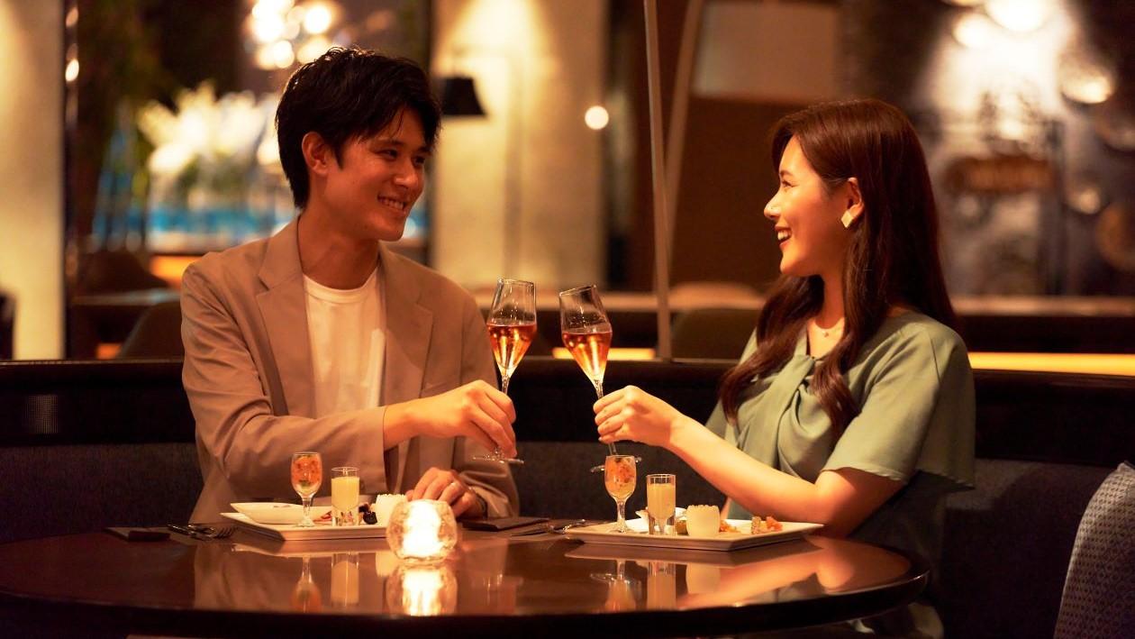 乾杯のグラスシャンパンが付いた、期間限定メニューのブッフェとともに、ロマンチックなクリスマスディナーを。