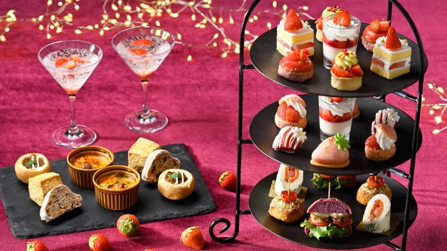 クリスマスケーキをミニサイズで仕立てた一品をはじめとする、旬のいちごを贅沢に取り入れた、Winter Strawberry Afternoon Tea。