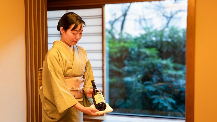 窓一面に広がる日本庭園を眺めながらワインを味わう、至福のひとときをお愉しみください。