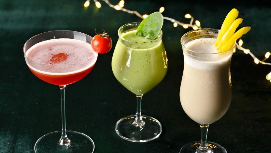 赤・緑・白のクリスマスカラーのカクテルが、特別な夜を華やかに彩ります。