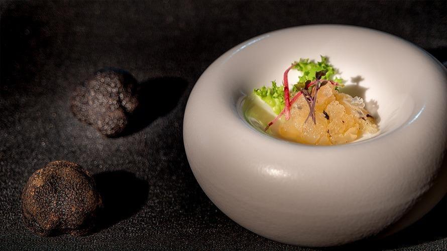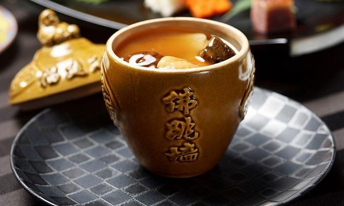 古稀殿では、日本のお客さまの口に合うようにレシピを改良。フカヒレ、鮑、干し貝柱、干しナマコ、金華火腿を加え、鶏とタケノコを上湯で6時間以上かけて蒸しあげました。