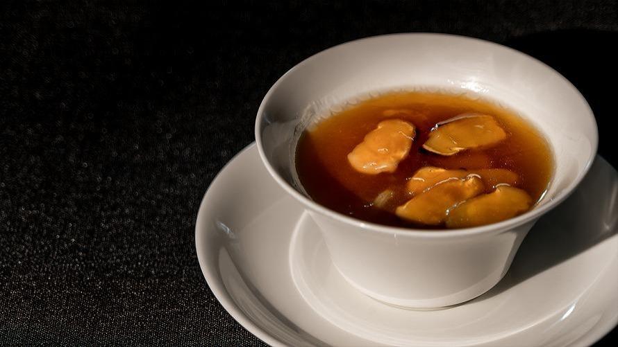 ■活蝦夷鮑とズワイ蟹の淡雪仕立て