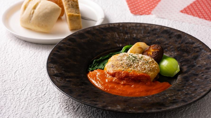 トマトソースの爽やかな酸味や、彩り豊かな東京野菜の味わいとともにお楽しみください。
