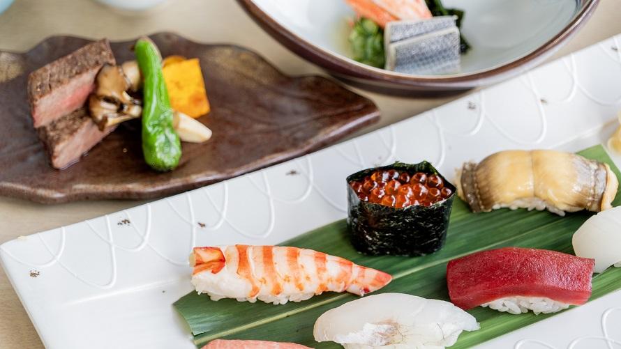 お寿司にお造りや煮物、和牛なども味わえる贅沢なコース。