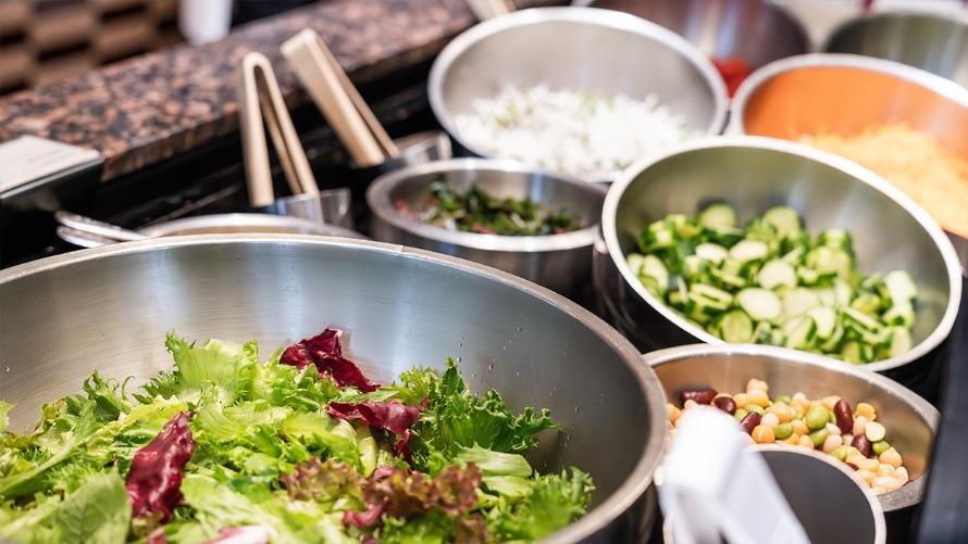 シャキシャキの緑黄色野菜やビーンズなど、朝に嬉しいサラダバー。