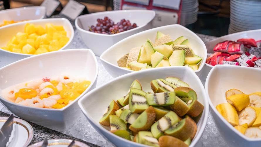 みずみずしいフルーツがずらりと並ぶ、フルーツバー。