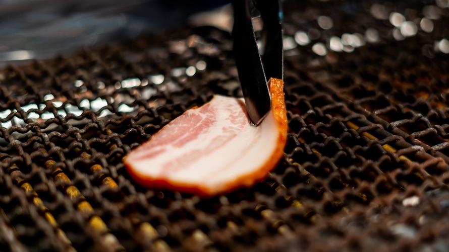 シズル感あふれるグリルコーナーからは、食欲そそるベーコンをプリンスホテルオリジナルBBQソースでご用意。