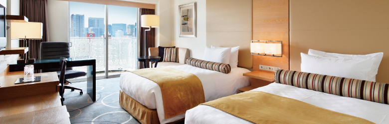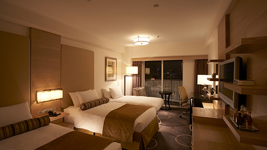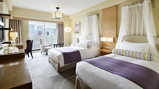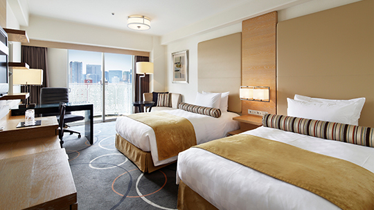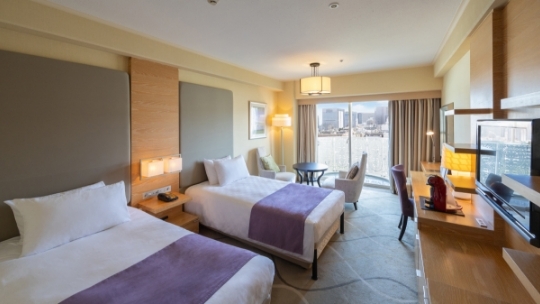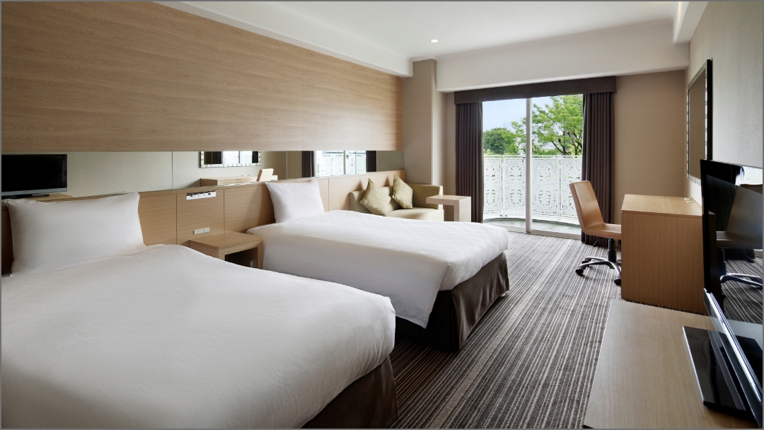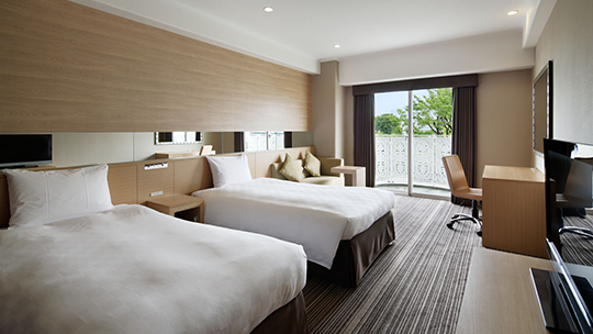 バルコニー付き華やかななかにも落ち着きのある洗練された空間です。一部のお部屋ではエキストラベッドの追加で最大3名さままでご利用可能です。