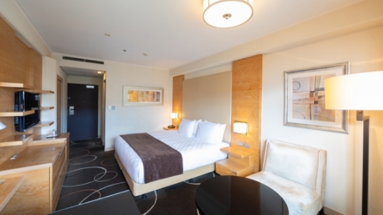 バルコニー付き29㎡の落ち着いた空間と開放感あるバルコニーを持つスーペリアモダンルーム。お部屋は3名までご利用可能で、プライベートな旅行にも最適です。