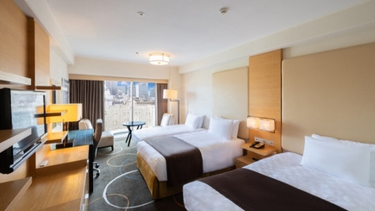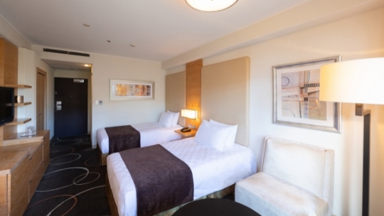 面積:(ツイン)29.9㎡ (トリプル)37.8㎡/ベッドサイズ:(ツイン)幅122cm×長さ203cm 2台 (トリプル)幅113cm〜×長さ203cm 2台・幅113cm×長さ184cm 1台/定員:2~3名