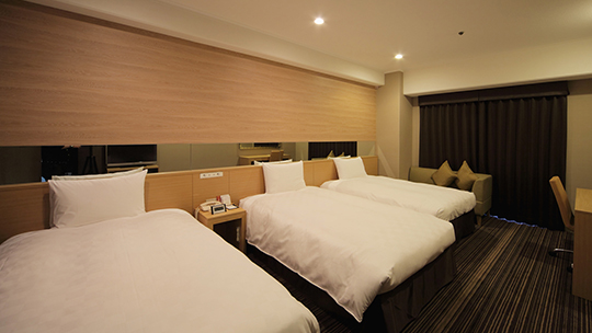 面積:29.9㎡〜/ベッドサイズ:(ツイン)幅110cm×長さ203cm〜 2台(トリプル幅110cm×長さ203cm〜 2台・幅103cm×長さ181cm 1台/定員:2~3名