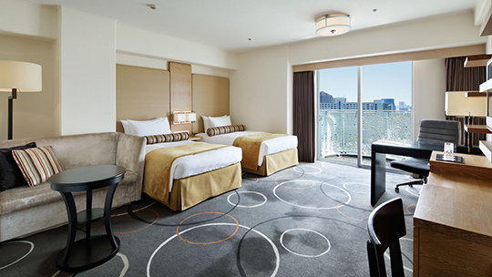 バルコニー付き38㎡のゆったりした空間と開放感あるバルコニーを持つスーペリアモダンコーナールーム。