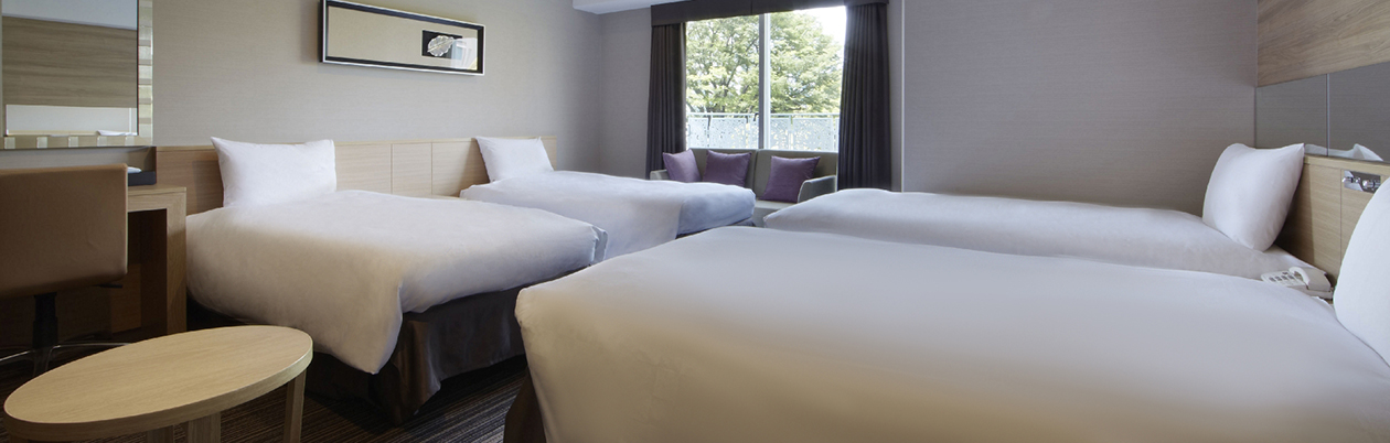 4名さまでご利用できるお部屋で、ご家族や女子会などグループでの滞在におすすめです。客室全体は木目調の自然を意識したデザインに統一しております。