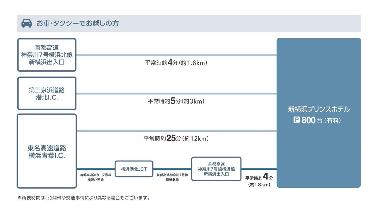 駅名/路線名 出口 徒歩 【新横浜駅】JR横浜線(JR東日本) 北改札口/アリーナ方面出口 約2分 【新横浜駅】東海道新幹線(JR東海) 東口/アリーナ方面出口 約2分 【新横浜駅】横浜市営地下鉄 3番出口 約2分 【新横浜駅】相鉄・東急新横浜線 6番出口 約2分 - お車・タクシーでお越しの場合は