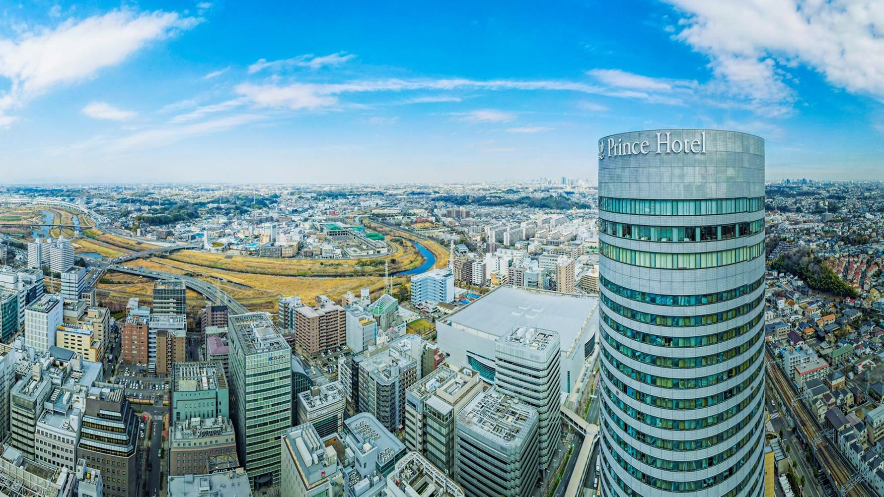 新横浜から徒歩2分。高さ150mのランドマークの中には、開放感あふれる客室が。