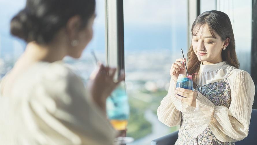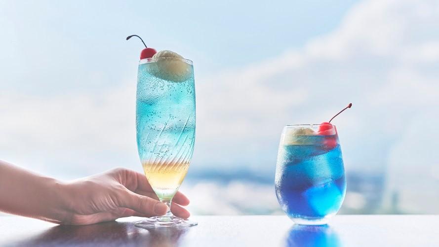 新横浜プリンスホテル最上階、地上約150mから眺める「空の色」を閉じ込めたクリームソーダです。