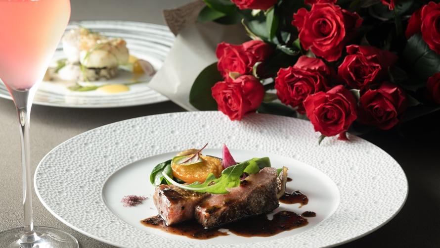 感謝、幸福、信頼、永遠などの意味を持つ12本のバラと、ハーフシャンパンがセットになったアニバーサリープラン。