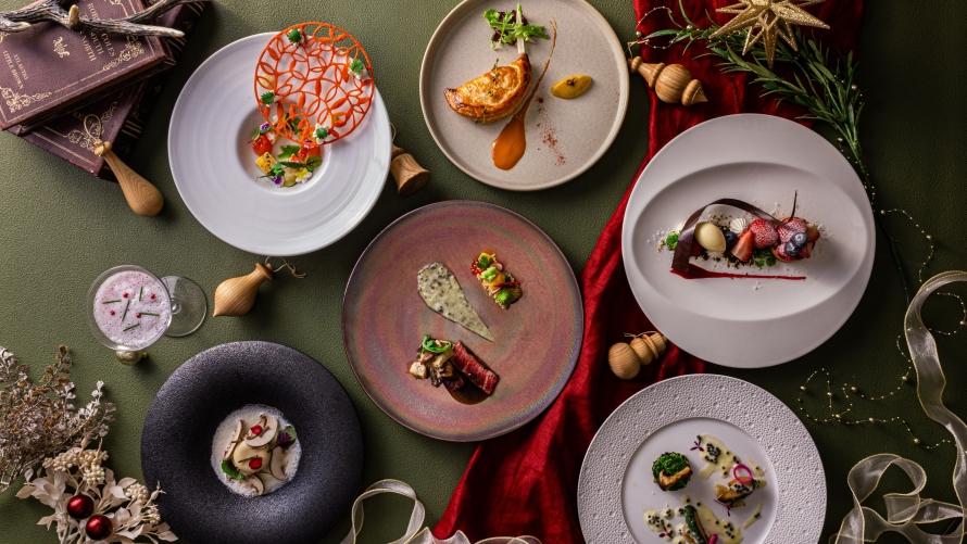 蝦夷鮑や神内和牛あかなど、シェフこだわりの食材を使用した全7品のフルコースでクリスマスの夜を華やかに彩ります。