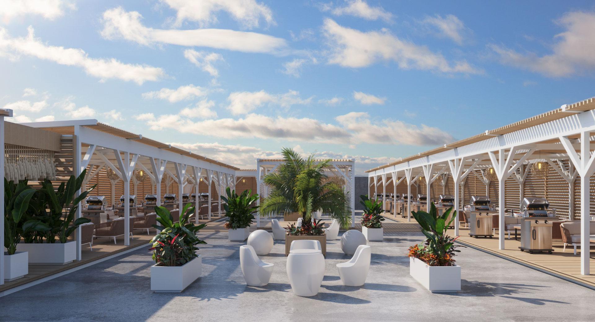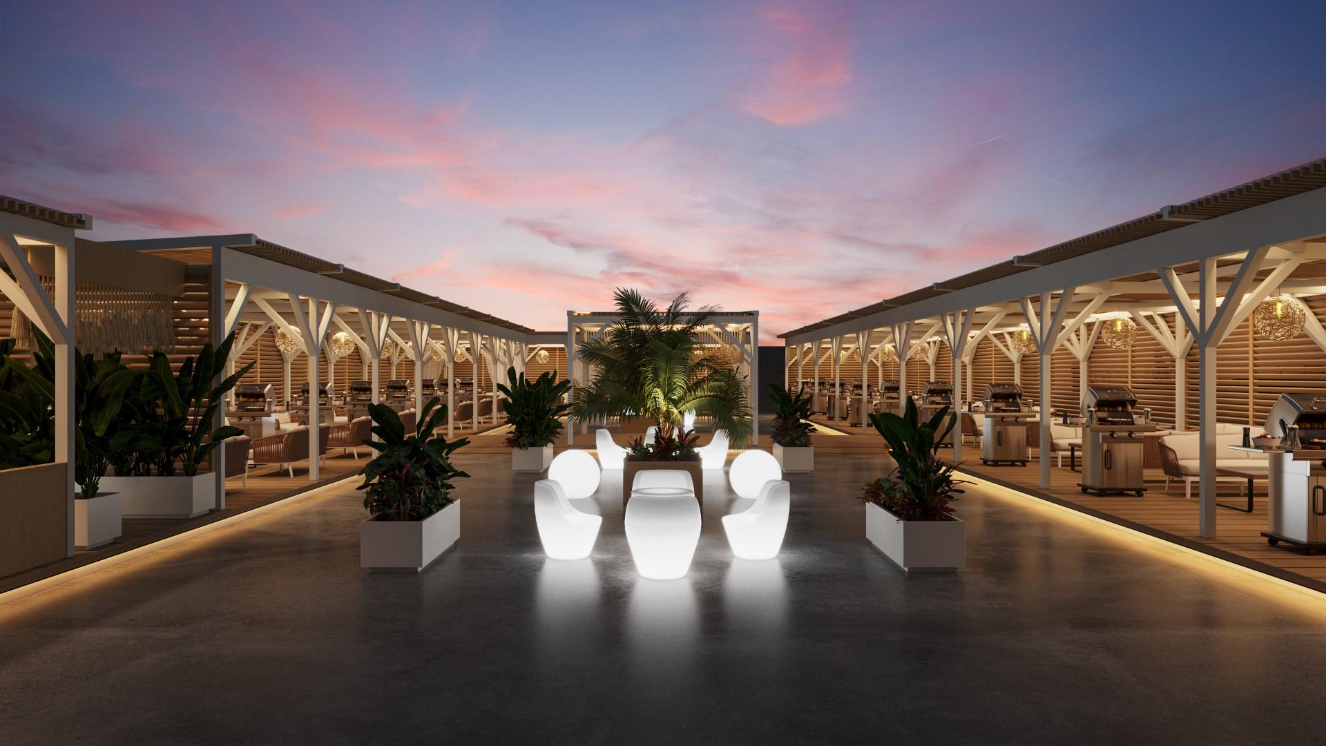 ホテル7F屋上 開放的空間でBBQが楽しめる
