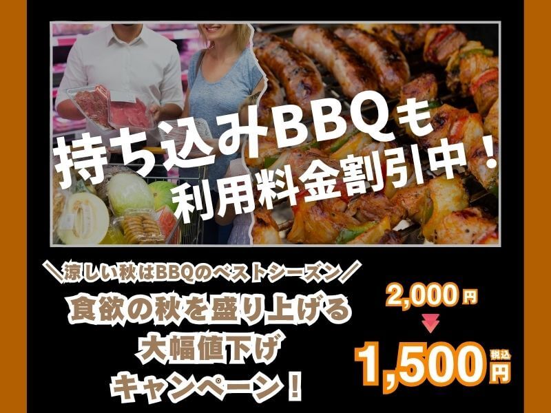 他の方の食材を取り分けで参加される場合でも、BBQ機材や備品等をご利用いただく料金として持ち込みプランの2500円を頂戴しております。