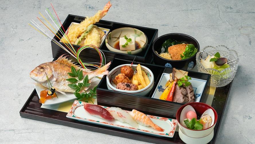 彩りよく盛り付けられた五感で楽しむ会席料理、ネタと職人の技で味わうにぎり寿司など日本料理の数々を40階からの眺望とともにお楽しみいただけます。