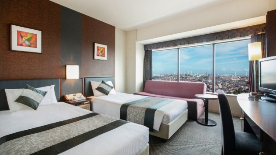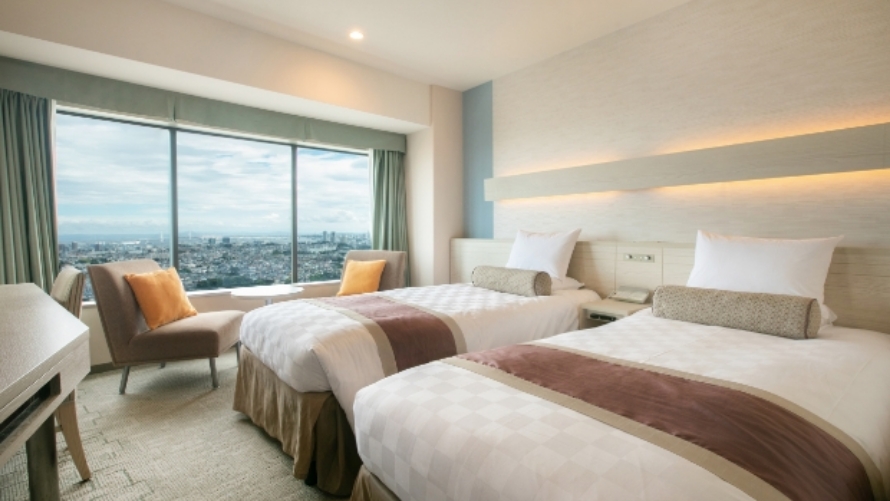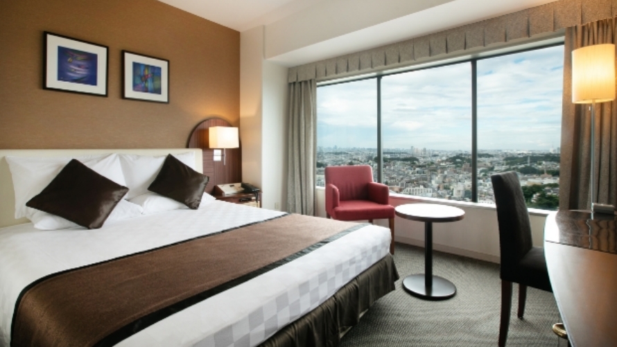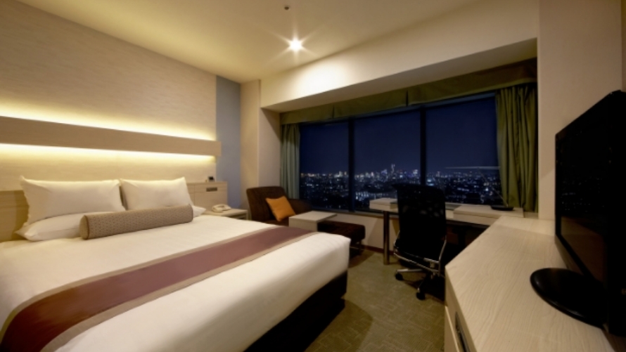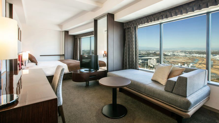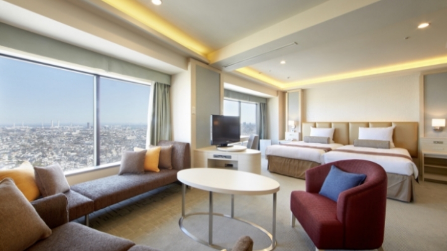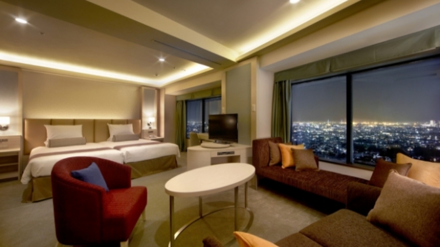 眺めの良い客室は、ベッドルーム・リビングルームを区切り、プライベートとビジネスシーンでの使い分けも可能。