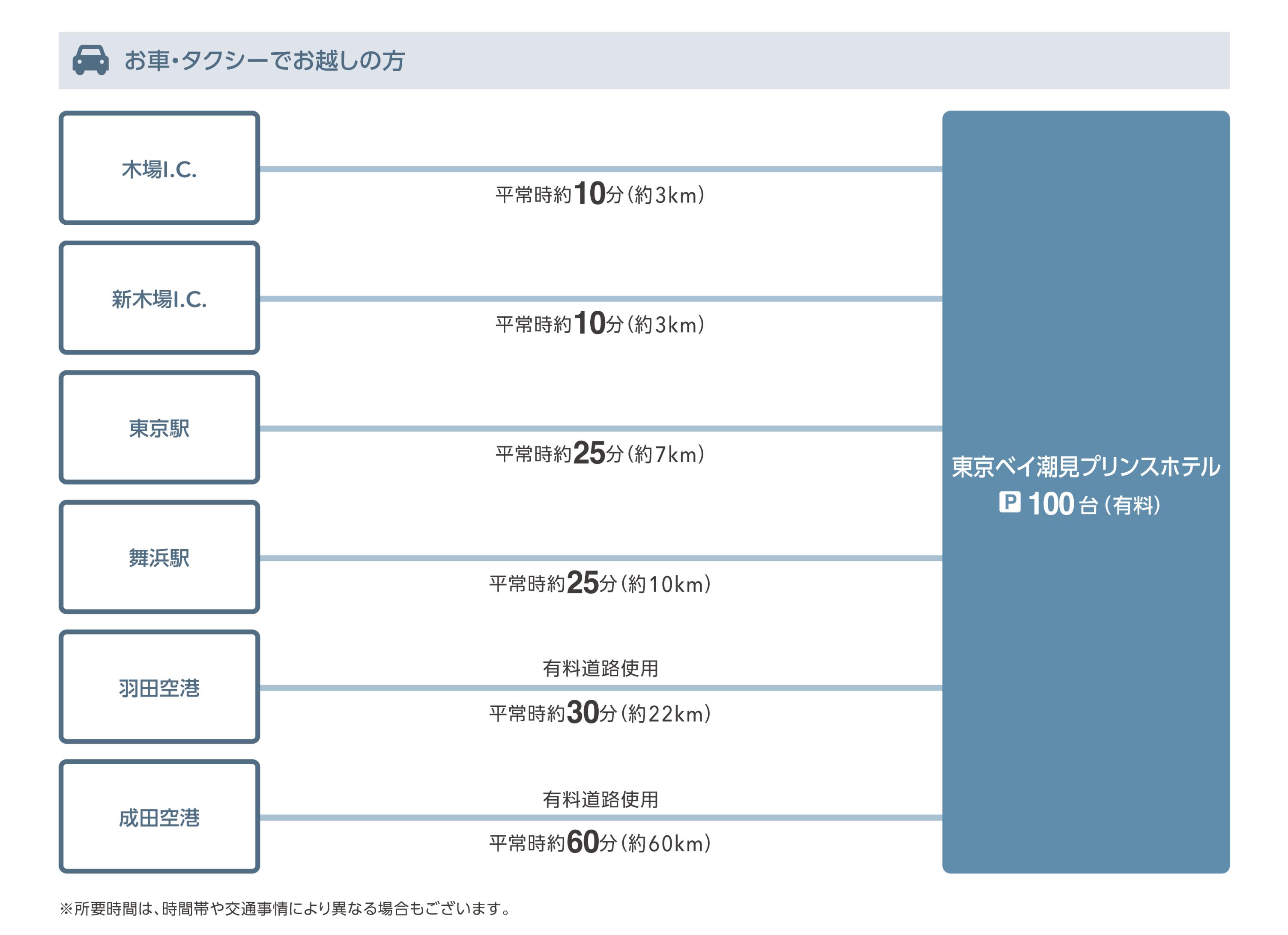 ※所要時間は、時間帯や交通事情により変更となる場合もございますので、あらかじめご了承ください。