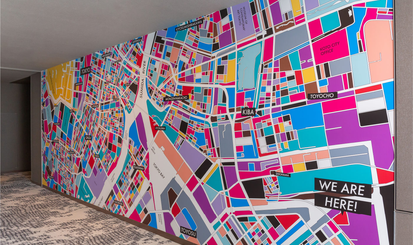 エレベーターホールの特大マップで”WE ARE HERE(イマココ)!”を確認したら、