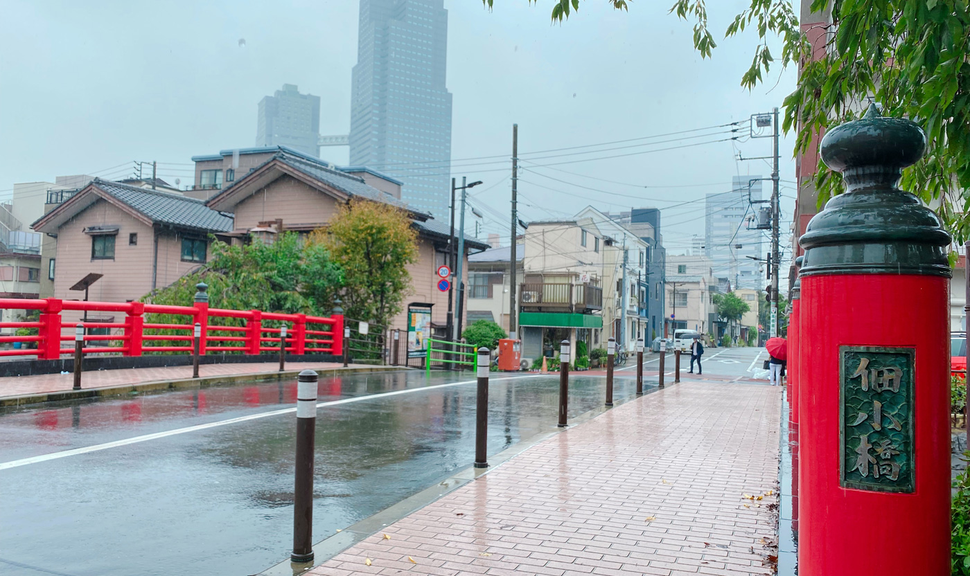 朱塗りの高欄が江戸情緒たっぷりですが、実際に延宝7年(1679年)には現在とほぼ同位置に橋が架けられていたのだとか。江戸の面影を探して橋の下を覗けば、水路に小舟が浮かぶ風景が牧歌的。