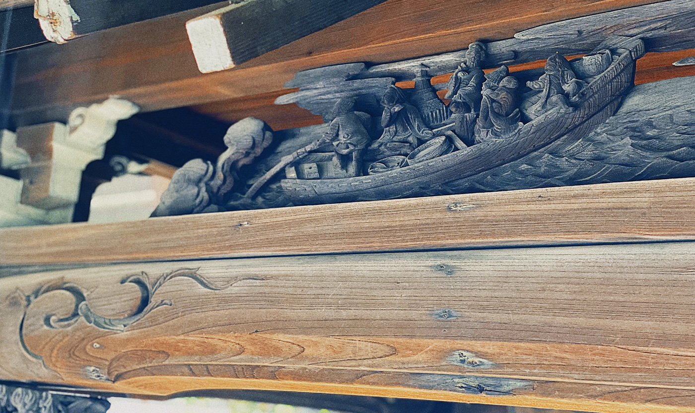 境内には、水盤舎の欄間や水神を祀った末社など、漁師の信仰ともいうべき遺構が残されており、当時の人々の営みが見えてくるよう。こうして鎮守社ならではの素朴な温かみに包まれていると、思わずふと、時が経つのを忘れてしまいそうです。