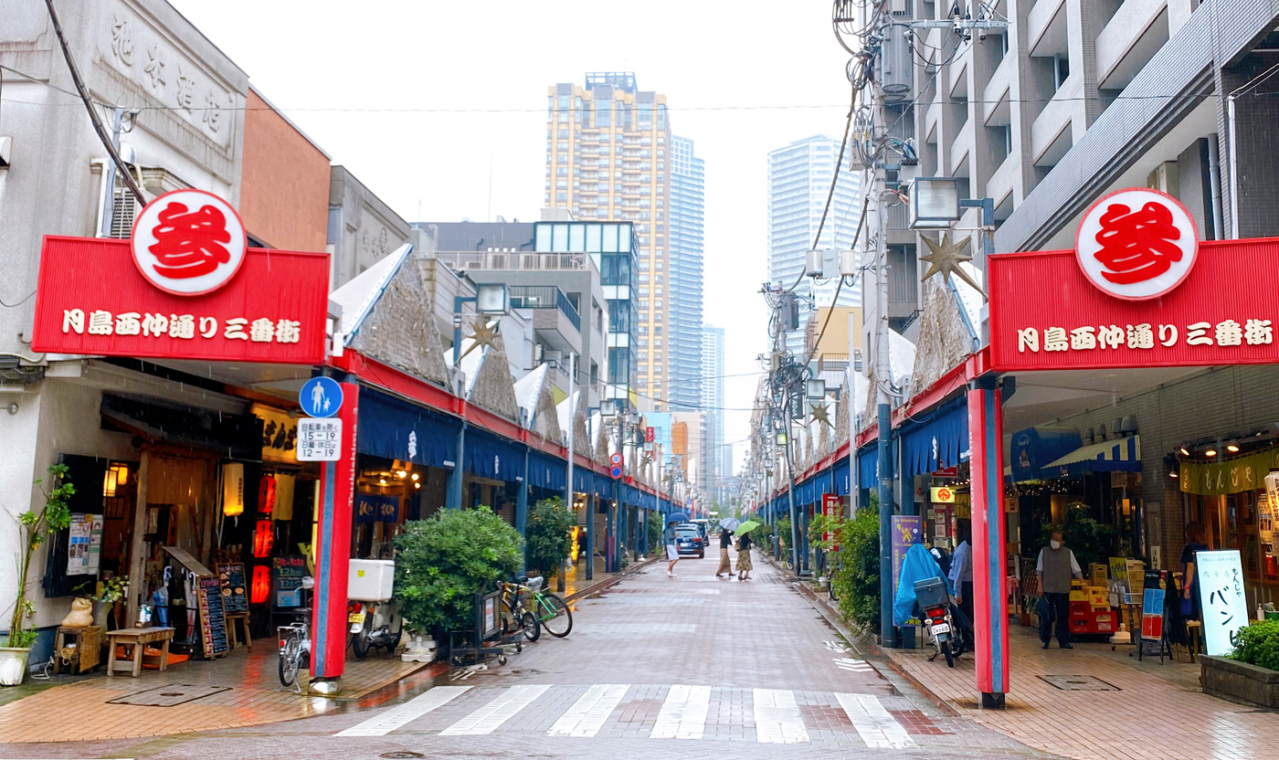 三番街の入り口で、月島観光の想い出をパチリ。