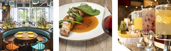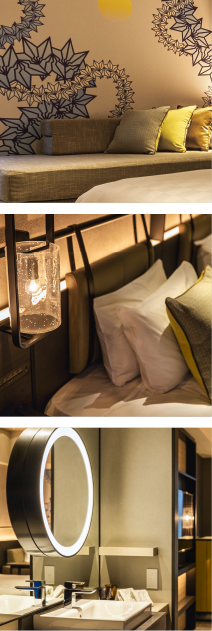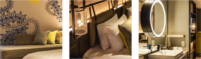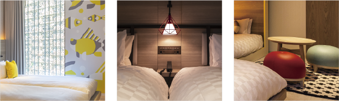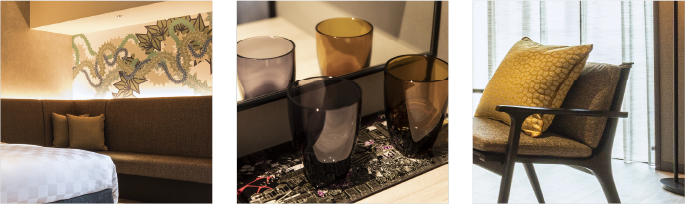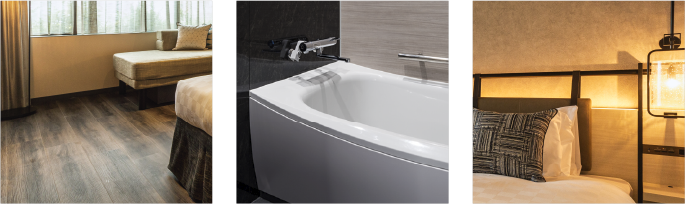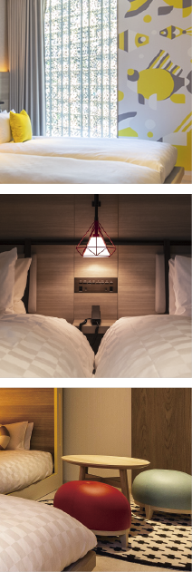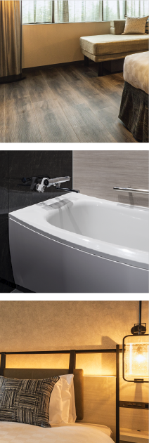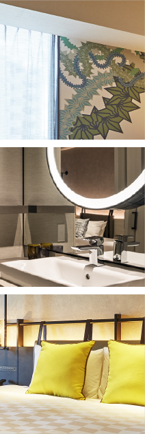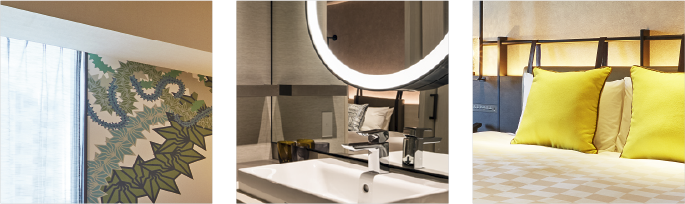 陽光が射し込む明るく開放的なロビー。「水辺の宿場町」をデザインコンセプトに“旅”にまつわる意匠で、みなさまをお出迎えします。 東京をモダンに表現した、エネルギッシュでありながら穏やかな空気漂う空間です。