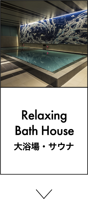 大きな2つの浴槽とサウナも併設された大浴場。男性用にはロウリュサウナ&水風呂、女性用にはスチームサウナと広々としたパウダールームもございます。壁面には、名画にインスピレーションを受けたアートも。