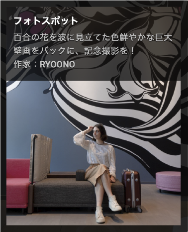 時代の移ろいとともに変化した潮見の歴史や、四季折々の街並みを表現したアートに感じる大都市のエネルギー。館内を歩くたびに表情を変えるグラフィックは必見です。