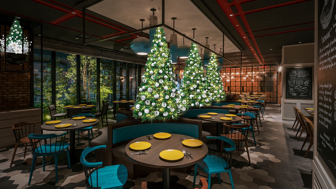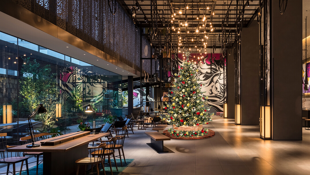 『Bayside Noël~水辺のクリスマス~』をテーマに港のクリスマスのように装飾されたロビーで、まるで海外にいるかのような特別なひとときをお過ごしください。