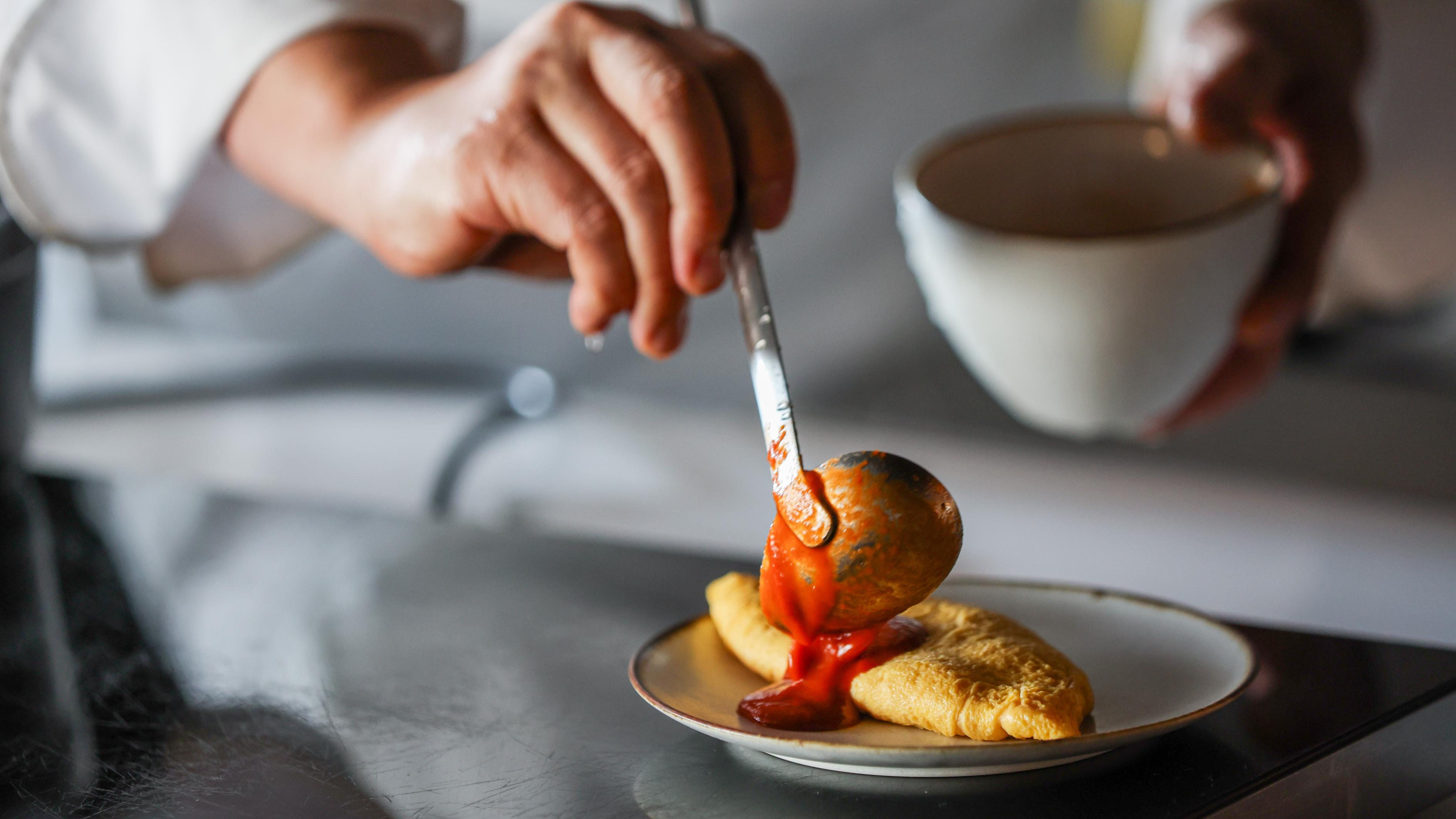 出来立てをお楽しみいただけるふわふわなオムレツ。