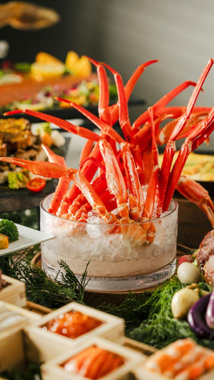 「Winter Holiday Dinner Buffet」は、2025年12月26日(金)~30日(火)、2026年1月3日(土)~5日(月)までの期間限定開催。シェフが目の前でカッティングサービスで提供する「グレースジャンボンハム」や「ハモンセラーノ」の柔らかい食感はまさに必食!デザートにはプチケーキやマカロンなど、多彩なスイーツが揃います。