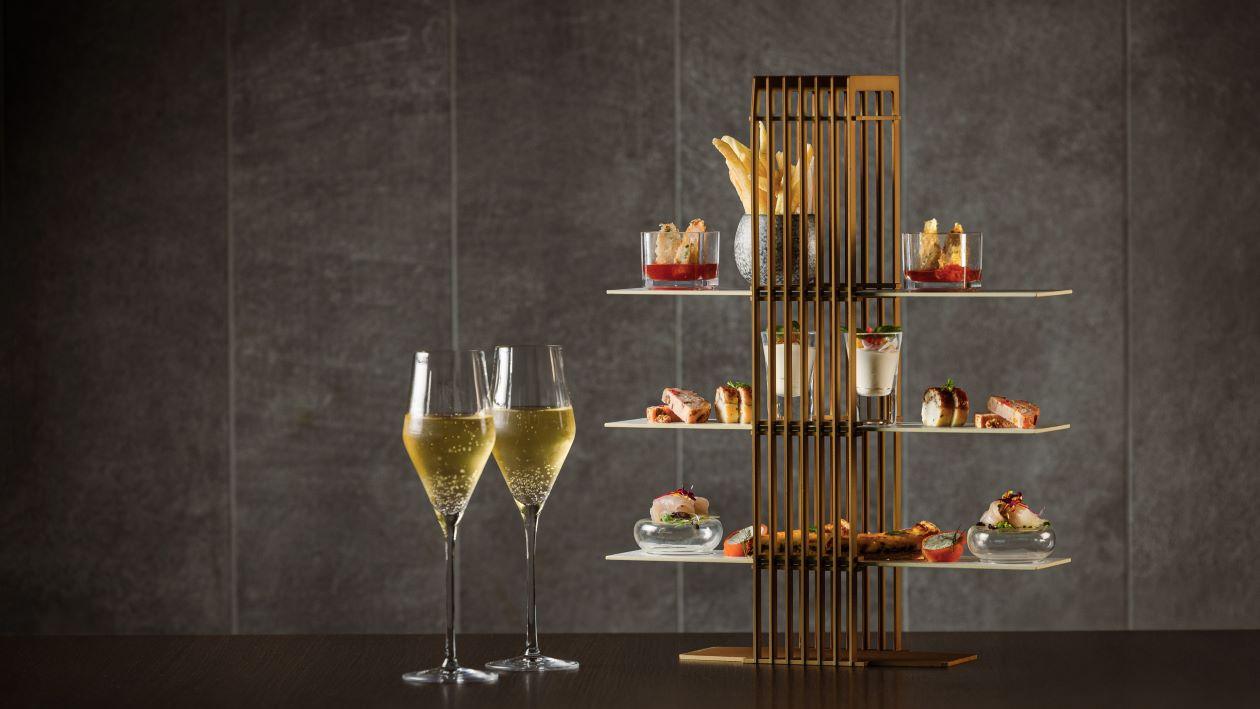 チェックインを済ませたら、まずはシャンパンとアペリティフ(ハイティスタイル)を。