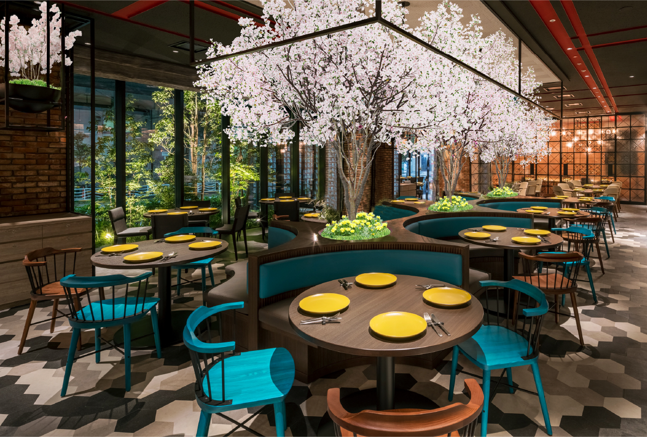 “水辺の宿場町”を連想させるインテリアと、TOKYOの今昔を織り交ぜたアートに彩られた開放的なフレンチダイニング。カウンターバーや個室を擁し、女子会・カップル・ファミリー・ビジネスなど幅広くご利用いただけます。