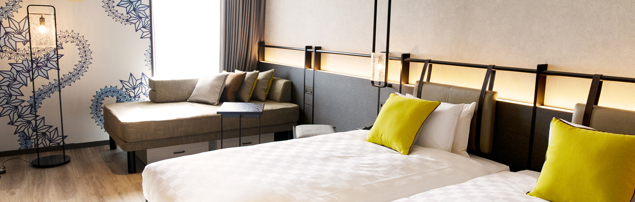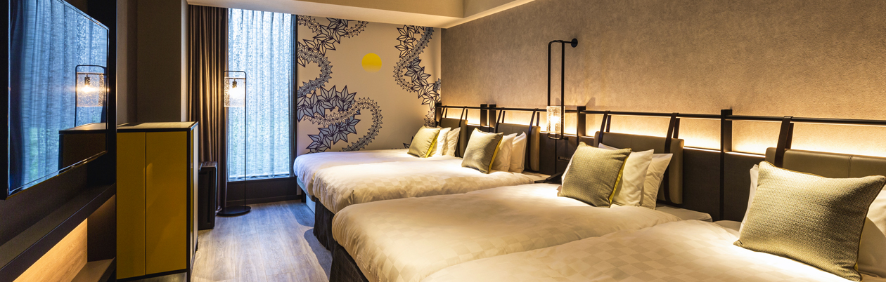 ソファベッド 114 cm x 192 cm (3名利用時) エキストラベッド 110 cm x 192 cm (4名利用時) ※常設ベッド・エキストラベッド(ソファベッド)は全てシモンズ製で快適な眠りをサポート。最大4名様でご利用が可能。 |