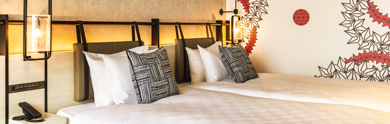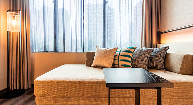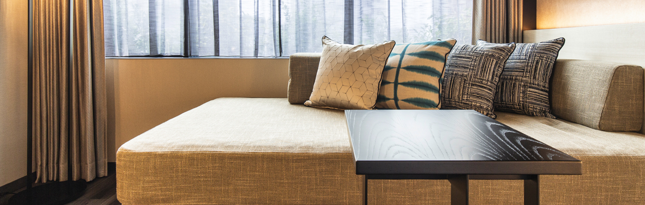 ソファベッド 114 cm x 192 cm (3名利用時) エキストラベッド 110 cm x 192 cm (4名利用時) ※常設ベッド・エキストラベッド(ソファベッド)は全てシモンズ製で快適な眠りをサポート。最大4名様でご利用が可能。 |