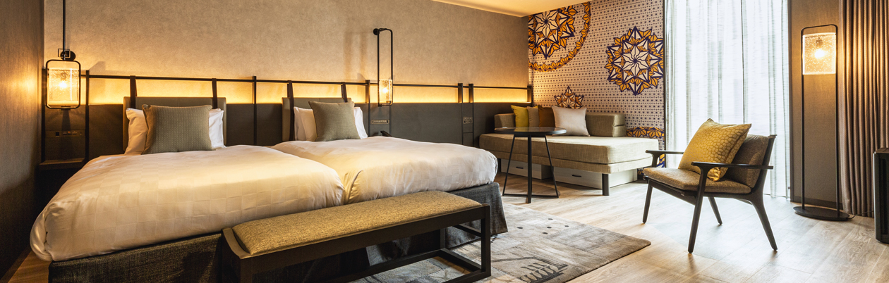 | この部屋の特長 | ホテル内でもっとも広い客室面積と、床から天井まで続く開放的な窓が特徴。内観はVRでもご確認いただけます。 |