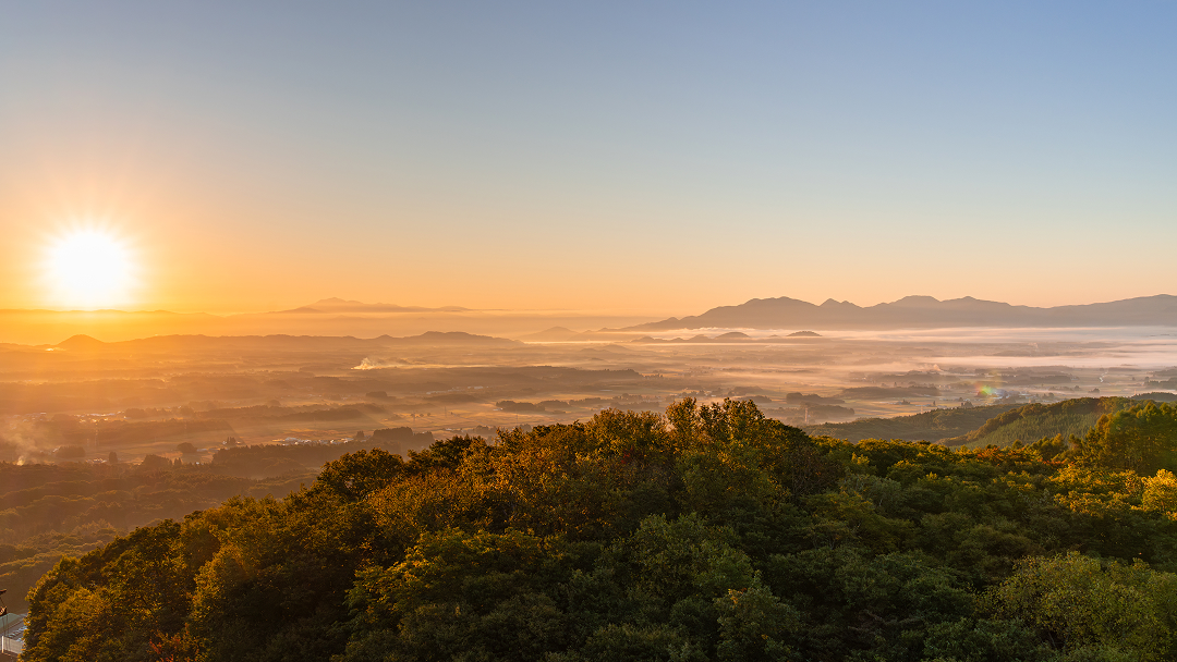 新緑の早朝雲海ロープウェー