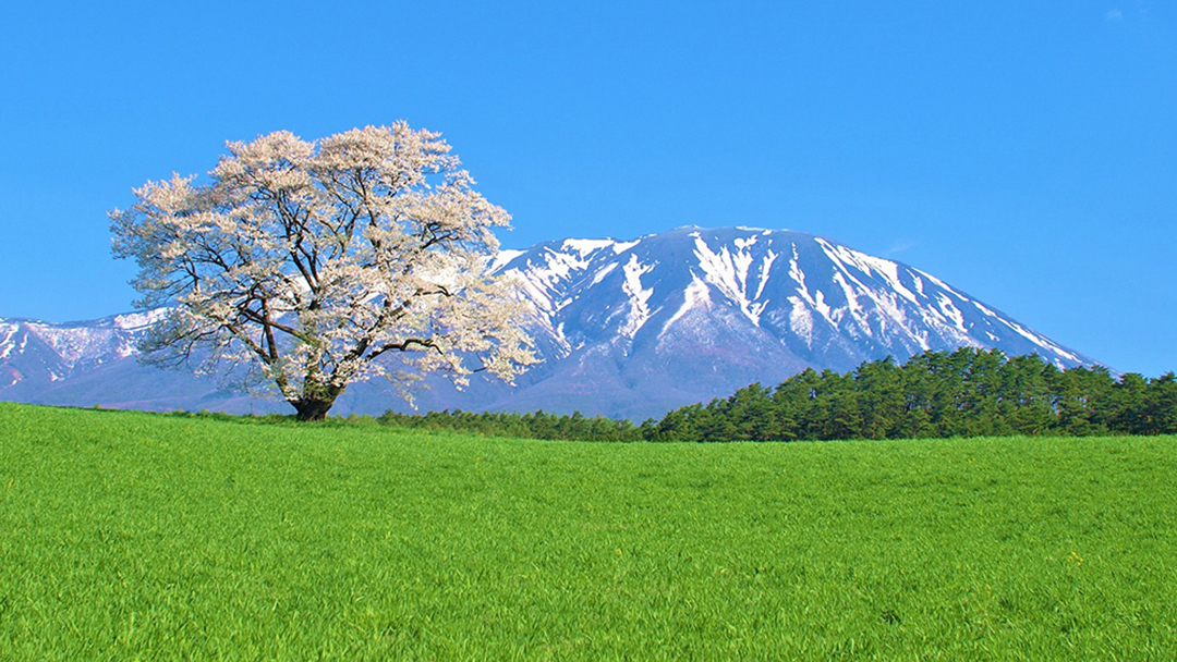 「SHIZUKUISHI HARU STAY」雫石プリンスホテルから約15分の所にある、東北有数の観光・レジャースポットとして人気の「小岩井農場」では、4月中旬からGWにかけて残雪の岩手山と一本桜が楽しめます。当ホテルでは、レンタサイクルのほか、無料送迎もご用意しております。「一足遅い桜」を岩手山と共にお楽しみください。